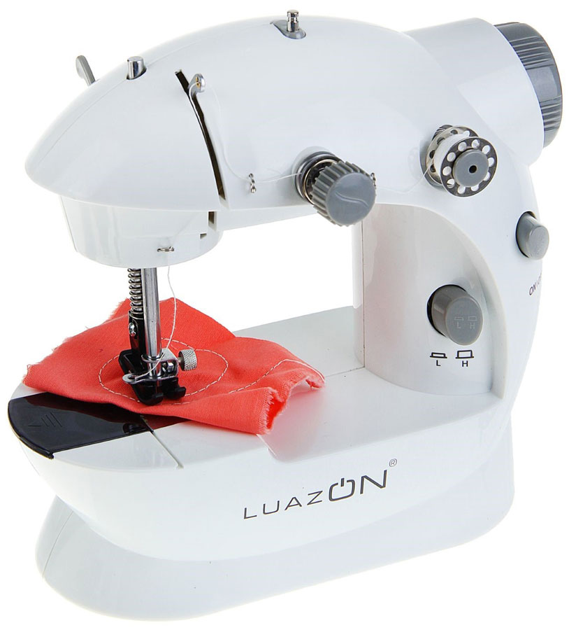Компактная швейная машинка (23?21х13 см) обеспечивает качественное шитьё любых видов фабричной ткани с получением ровной и прочной строчки! Мощность - 5 Вт. Работает от 4-х батареек типа АА или от электросети. В комплекте: ножная педаль, сетевой адаптер, аксессуары для шитья.