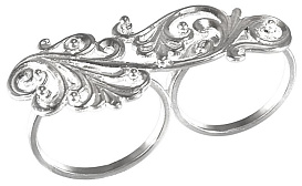 Вес ~ 6,5-7,3 гр. Размер декоративного элемента 15х40 мм. Двойное кольцо надевается сразу на два пальца (указаны размеры меньшего кольца, второе - больше на 1 размер).