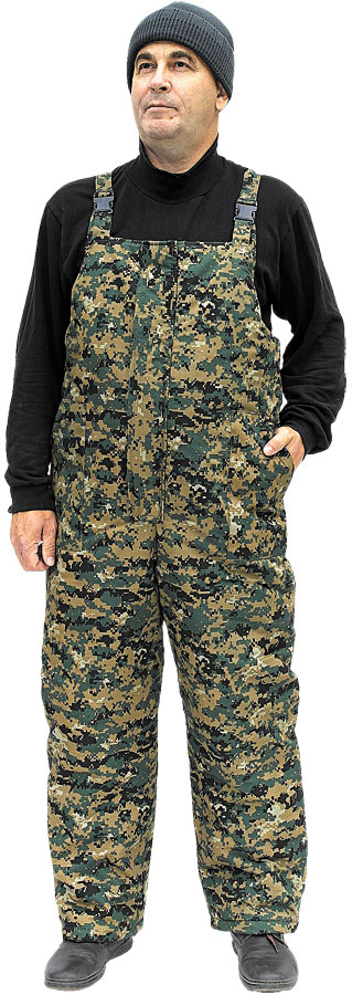 Куртка прямая на молнии с ветрозащитной планкой на липе, имеет 2 прорезных кармана, съемный капюшон, утеплитель синтепон 300гр/м2. Полукомбинезон на молнии с ветрозащитной планкой на липе, имеет 2 накладных кармана, лямки регулируются. Утеплитель синтепон 200гр/м2. Материал верха: смесовая ткань (рип-стоп армированная).