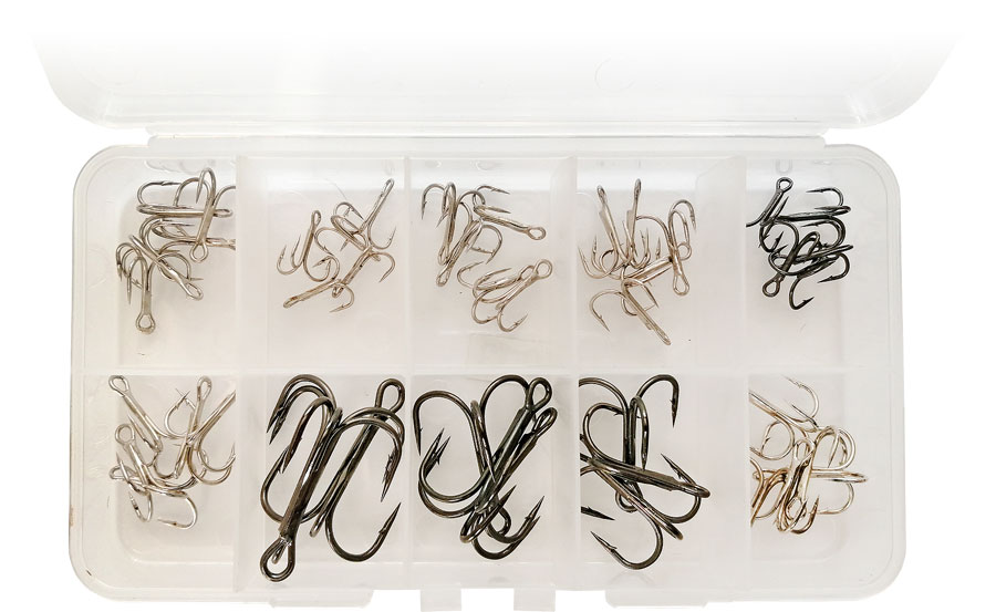 Заточенное острие тройников Needle Point обеспечивает легкое проникновение в тело рыбы. Гладкая кованая поверхность крючков\r\n и одинаковая длина для сбалансированного веса. Равные углы между крючками обеспечивают плавное обтекание тройника и \r\nнизкое сопротивление воде. Антикоррозийное покрытие позволяет использовать изделие для рыбалки в соленой воде.\r\nВ наборе: размер №1, №2, №3 по 3 штуки; размеры с №4 по №10 по 5 штук. Набор собран в морозостойком кейсе размером 19*10*3см.
