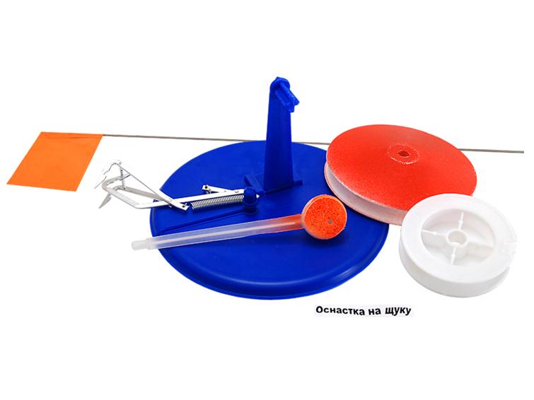 Легкая и компактная надледная жерлица. Оснастка состоит из круглого основания, катушки , пружины с флажком.