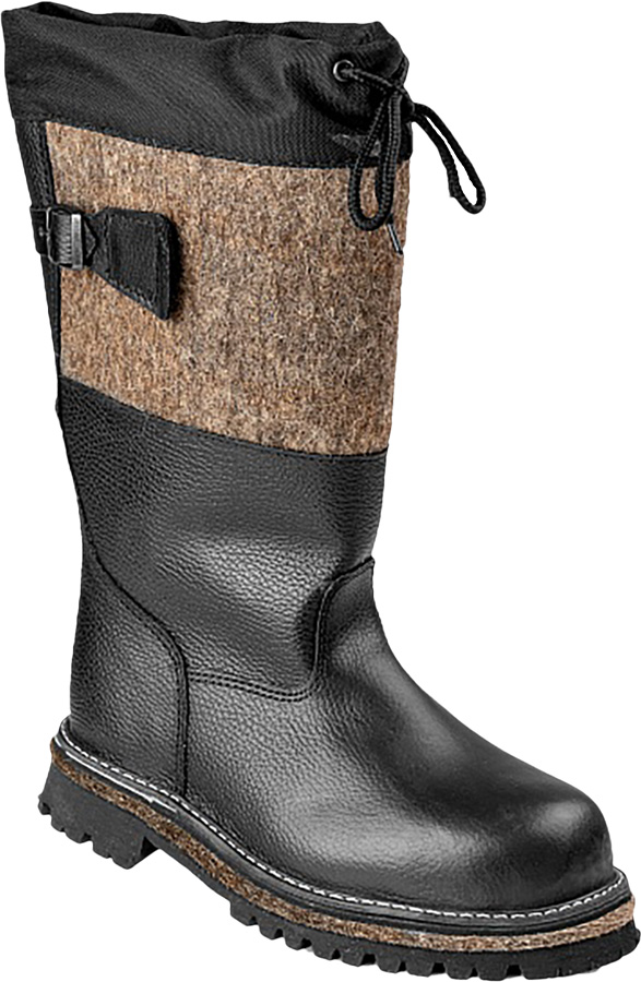Верх обуви ? натуральная кожа юфть толщиной 1,8?2,0 мм. Голенище из обувного шерстяного войлока толщиной 6 мм с защитным покрытием из натуральной кожи, регулируется по ширине с застежкой на пряжку. Клапан из натуральной кожи. В верхней части голенища манжета из ткани ?Оксфорд? Подкладка под союзкой ? из войлока иглопробивного толщиной 4 мм. Носок из термопластического материала. Подошва из резины износостойкая, морозостойкая. Протектор глубиной 6 мм и элементы подошвы обеспечивают хорошую сцепляемость с поверхностями. Высота 32см.
