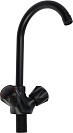 Лёгкий и прочный корпус из чёрного АБС-пластика. Тип управления - двухвентильный. Керамический запорный клапан. Тип излива - высокий, поворотный (300 мм). Аэратор. Крепление на раковину.