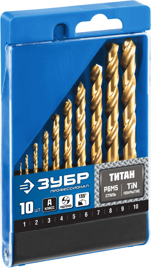 ЗУБР "Профессионал" набор сверл по металлу "ТИТАН" (10 шт.)