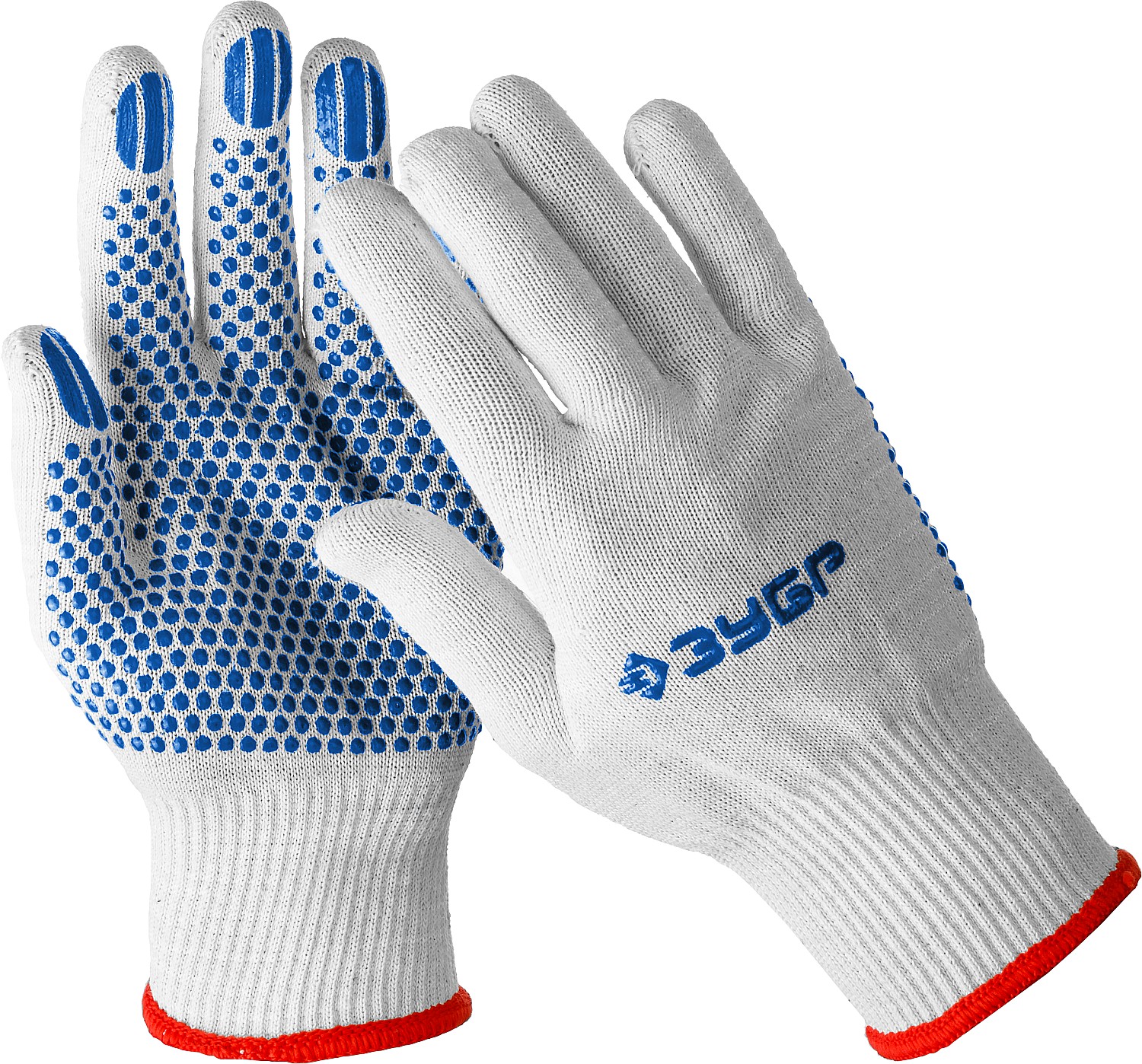 ЗУБР "ТОЧКА+" перчатки трикотажные с точечным ПВХ-покрытием
