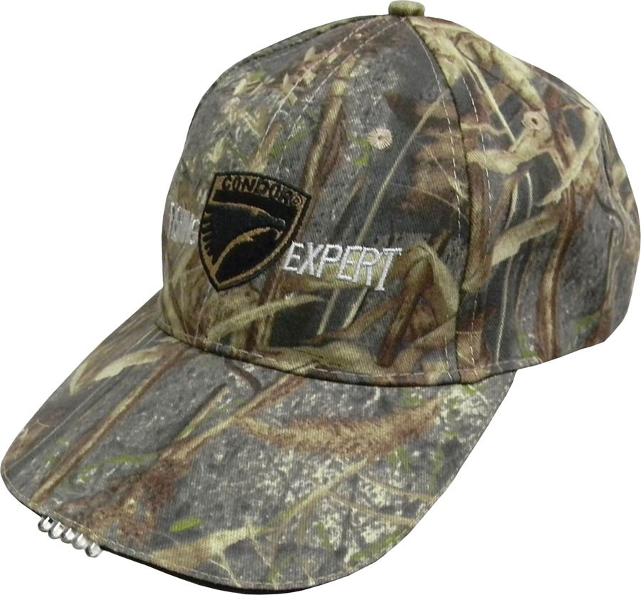 Практичная бейсболка со встроенным фонариком на светодиодах. В козырек встроены 5 мощных светодиодов, соединенные с блоком питания, находящимся в кармашке подкладки. Кнопка включения/выключения так же скрыта в козырьке. Питание от двух батареек типа CR2032 (входят в комплект). Объем регулируется застежкой сзади. Идеально подходит для активного отдыха, охоты и рыбалки.