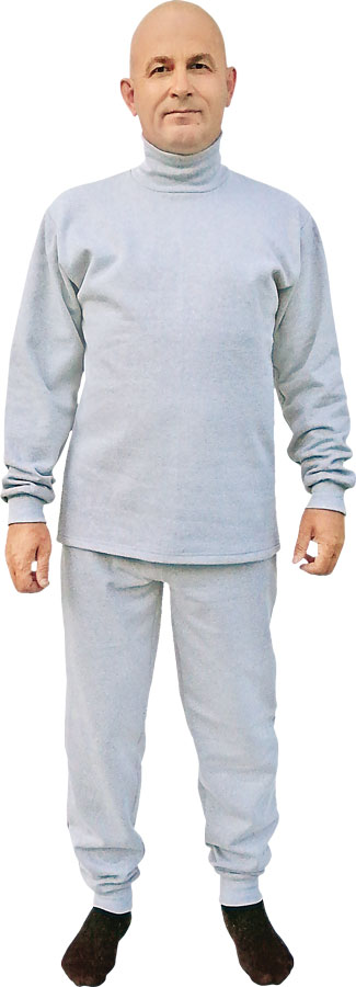 Белье нательное утепленное (футер 3-х нитка). Футболка с воротником стойка, длинный рукав на манжете. Брюки с поясом на резинке, низ на манжете. Состав: хлопок, эластан.