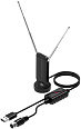 Новая миниатюрная телевизионная антенна с функцией усиления принимаемого сигнала и питанием через USB-разъём. Коэффициент усиления - 20 дБ. Поворотные "усы". ДМВ (470-860 МГц). Шнур - 2 метра. Размеры: 75х35х35 мм. В комплекте двухсторонний скотч для фиксирования устройства.