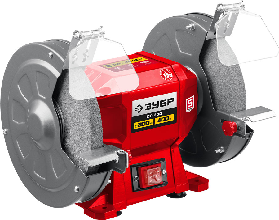Мощный прибор для быстрой заточки садового, слесарного и прочего инструмента. Мощность - 400 Вт. синхронный двигатель увеличенной мощности с принудительным охлаждением для предотвращения перегрева. Скорость без нагрузки - 2950 об./мин. Размеры диска - 200х20 мм. Диаметр посадочного отверстия - 32 мм. Регулируемые защитные козырьки. Регулируемые площадки опоры. Пылезащищенный выключатель. Отверстия в основании для стационарного крепления. Два круга разной зернистости 60/80. Вес ~ 10 кг.
