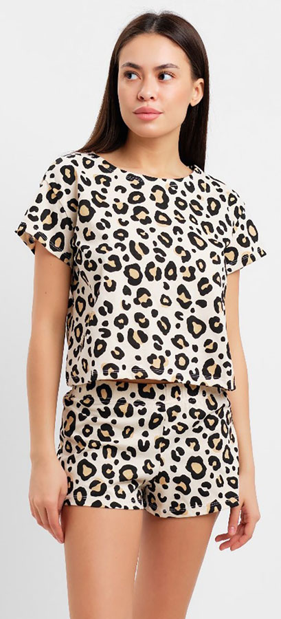 Домашний комплект - короткие шорты и футболка. Материал: 100% хлопок.