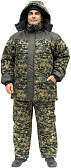 Куртка прямая на молнии с ветрозащитной планкой на липе, имеет 2 прорезных кармана, съемный капюшон, утеплитель синтепон 300гр/м2. Полукомбинезон на молнии с ветрозащитной планкой на липе, имеет 2 накладных кармана, лямки регулируются. Утеплитель синтепон 200гр/м2. Материал верха: смесовая ткань (рип-стоп армированная).