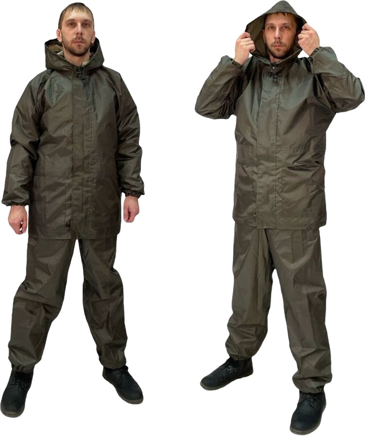 Куртка-дождевик прямого силуэта с притачным капюшоном, центральной застежкой на "молнию", с планкой на липучке. Накладной боковой карман с клапаном на липучке. Рукава на резине. Капюшон одношовный с кулиской. Швы проклеены герметичной лентой. Брюки с притачным поясом на резине. В подгибке низа брюк резинки. Ткань Оксфорд - это прочная, износостойкая, синтетическая ткaнь с водоотталкивающим полиуретановым покрытием (PU 4000). Чехол для хранения.