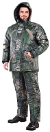 Куртка прямая, застежка молния, с ветрозащитной планкой. Рукав на манжете с резинкой. Имеет 4 прорезных кармана с листочкой. Воротник стойка. Капюшон отстегивается, регулируется шнурком. Полукомбинезон: 2 накладных кармана, лямки регулируются фастексом. Ткань - оксфорд. Утеплитель - слайтекс 200 г/м2.