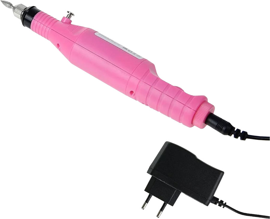 Мощность 5 Вт. Регулировка скорости от 3000 до 15000 об/мин. В наборе: 5 насадок с алмазным напылением, фреза и 6 сменных абразивных насадок. С помощью машинки можно создать форму ногтей, отшлифовать поверхность, изменить толщину ногтевых пластин, удалить кутикулу и заусенцы. Простота и удобство использования. Работает от электросети.