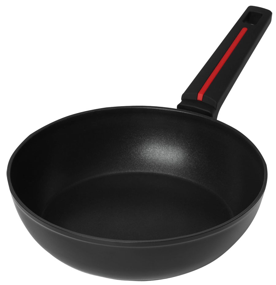 Flame ? идеальное сочетание стиля, функциональности и качества. Эта чёрная красавица станет незаменимым помощником на вашей кухне. Благодаря антипригарному покрытию, сковорода позволит готовить любимые блюда без лишнего жира и масла, сохраняя их вкус и пользу. Индукционное дно обеспечивает быстрый и равномерный нагрев, что гарантирует идеальное приготовление пищи. Высота - 7,5 см. Кованый алюминий. Толщина стенок - 3,3-3,5 мм. Ручка из бакелита.