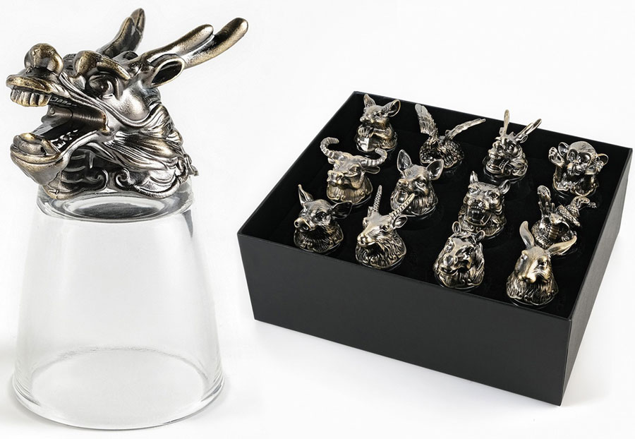 Набор рюмок-перевертышей с головами животных ? оригинальный подарок для охотника, рыболова, а также будет незаменим на большом дружеском застолье или на охотничьем привале. Стопки будут прекрасно сочетаться с любой сервировкой и могут использовать как для повседневного использования, так и для особых случаев. Кроме того, стеклянные прозрачные рюмки легко моются и не подвергаются коррозии. Объём стопки - 30 мл. Подарочная упаковка.