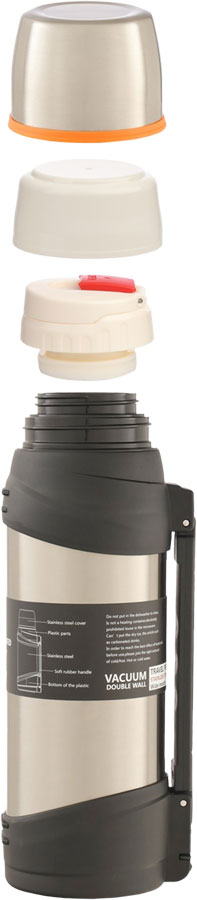 Поддерживает температуру горячих и холодных напитков в течение 12 часов. Корпус из высококачественной нержавеющей стали. Вакуумный. Герметичная пробка с удобным поильником и замком от случайного открытия. Фильтр на крышке. Ремешок и выдвижная ручка для удобства переноски. Крышка-кружка.