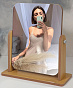 Изящное поворотное зеркало на подставке из бамбука - украшение для туалетного столика. Конструкция устойчиво держится на поверхности. Размеры зеркала - 17х22 см.
