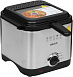 Специальный прибор для обжарки в раскалённом масле различных продуктов - картофельной соломки (картофель фри), панированной рыбы и мяса, грибов, овощей и др. Мощность - 900 Вт. Чаша для масла с антипригарным покрытием - 1,5 литра. Металлическая корзина с ненагревающейся ручкой. Плавная регулировка температуры до 190 °C. Прозрачное смотровое окошко. Корпус из нержавеющей стали. Моющаяся крышка с фильтром. Индикатор работы. Вес ~ 1,8 кг.