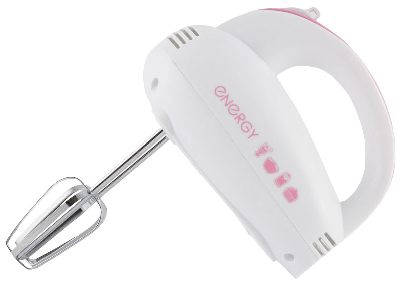 Мощность - 200 Вт. Пять скоростных режимов. Кнопка извлечения насадок. Венчики для смешивания и взбивания яиц и крема. Насадки для замешивания теста.