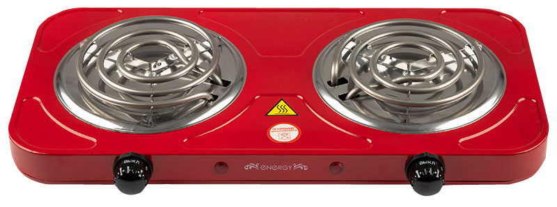 Мощность - 1000 + 1000 Вт. Две конфорки со стальными ТЭНами (диаметр 140 мм). Ручки регулировки мощности. Световые индикаторы работы. Защита от перегрева.