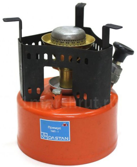 Примус Дастан-1 - предназначен для приготовления пищи и кипячения воды в походных условиях, работает на чистом автомобильном бензине.\r\nБудет надежным помощником для туристов, альпинистов, охотников, рыболовов, дачников и т. д.Емкость бачка - 0,8 л. Время непрерывного горения при полной заправке - от 3,5 до 5 ч. Габаритные размеры - 136х158 мм. Диапазон температур от -30*С до +40*C в защищенном от ветра месте.