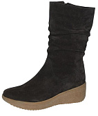 Теплые замшевые сапожки на натуральном меху. С внутренней стороны молния, высота сапога от пятки 23см, ширина голенища 30см. Высота платформы 5см.