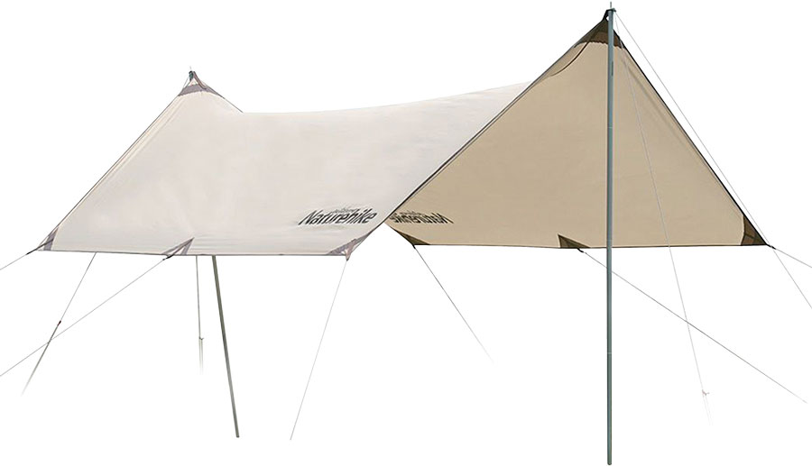 Размер 4,5x4,5м. Материал тента: оксфорд (ПУ3000мм водонепроницаемый). В комплекте веревки 8шт, колышки 8шт, опорная разборная стойка 2шт, сумка переносная, вес: 2,8 кг.