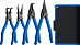 Профессиональный набор для работы со стопорными кольцами (внешние и внутренние) диаметром 19-60 мм. Наконечники из прочной Cr-V стали. Возвратная пружина упрощает работу. Антикоррозийной защитное покрытие. Изогнутые наконечники для работы в труднодоступных местах. Длина инструментов - 160-185 мм. Нейлоновой чехол для удобного хранения и транспортировки.