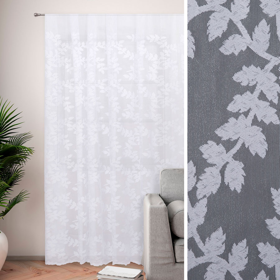 Материал: 100% полиэстер (жаккард синтетический). Светопроницаемость: 90%. Тип крепления - шторная лента.
