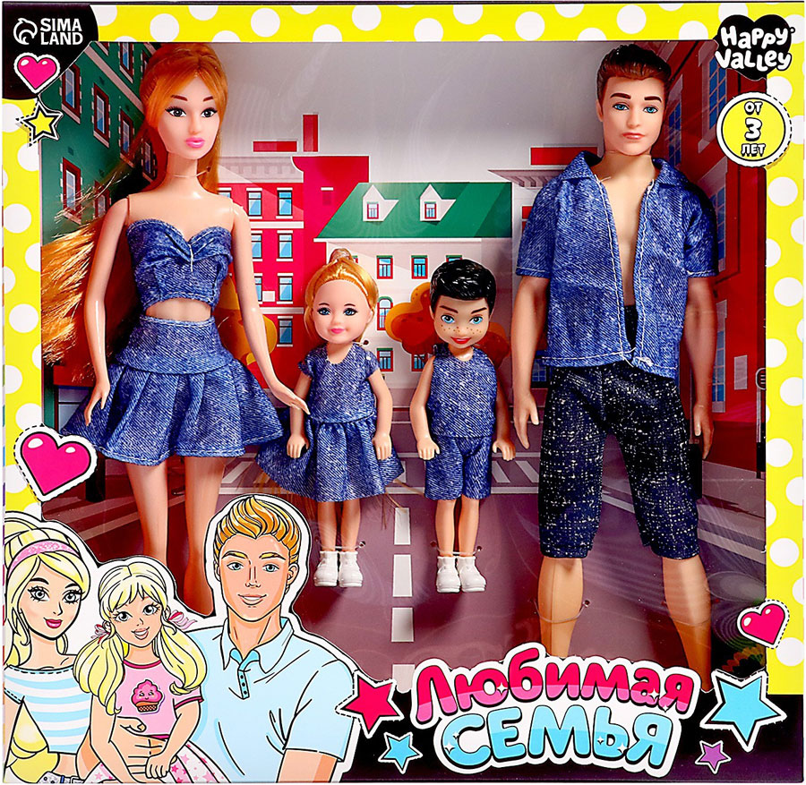 Высота кукол (мама и папа) - 29 см, дочки и сына - 13 см.