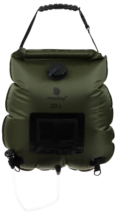 Переносной душ подходит для походов, туристических поездок за город. Легко помещается в рюкзак благодаря компактным размерам в сложенном состоянии. Можно закрепить в туристической душевой кабинке или на ветку дерева. Объёмный резервуар (50х47х12 см) из плотного ПВХ с большой горловиной и шлангом (65 см) с лейкой. Быстро нагревается на солнце. Надёжный ремешок. Чехол для хранения.