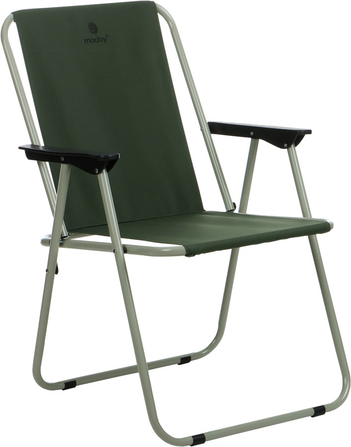 Материал: оксфорд 600D. Стальной каркас. Нагрузка - до 100 кг. Классическая простая складная конструкция с натянутой спинкой. Пластиковые подлокотники. Размер в сложенном виде: 68х52х4 см. Вес ~ 4 кг.