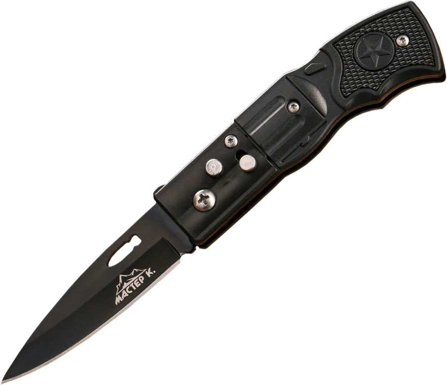 Общая длина - 16 см. Клинок - 7 см. Толщина - 1,2 мм. Кнопка выкидывания. Пластиковая рукоятка. Вес ~ 80 гр.