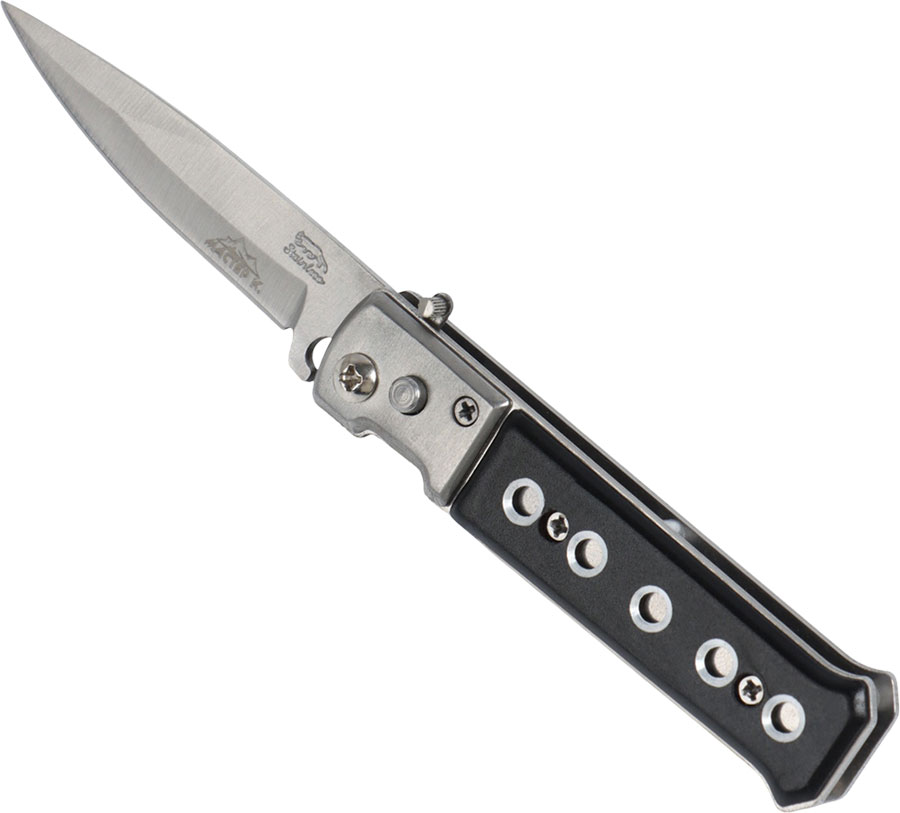 Общая длина - 16,5 см. Клинок - 7,5 см. Толщина - 1,3 мм. Кнопка выкидывания. Металлическая рукоятка. Вес ~ 70 гр.