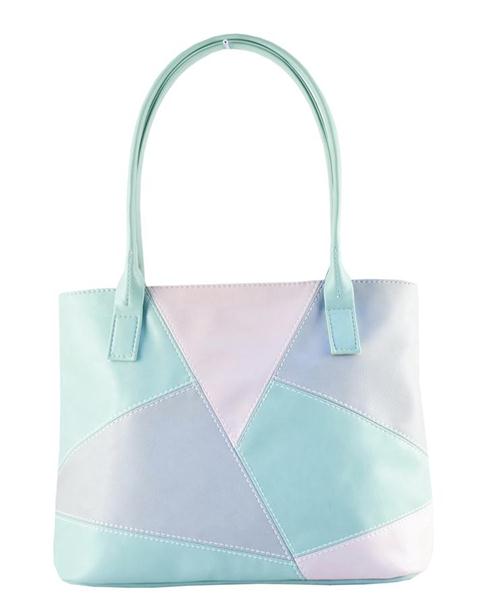Размер: 33х28х16 см. Симпатичная комбинированная сумка. Внутренний объем разделен на два отдела карманом-перегородкой на молнии, 4 дополнительных кармашка. Иск. материал.