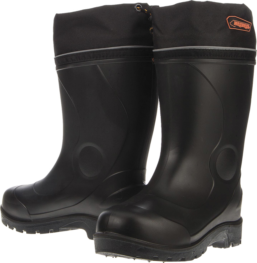Термосапоги из ЭВА с подошвой из полиуретана утеплены 6-слойным чулком, снабжены шипами против скольжения, отличаются высокой морозостойкостью и эластичностью, специальный состав сырья позволяет сапогу сохранять свои характеристики при отрицательных температурах. Литье сапога из ЭВА и полиуретановой подошвы - технология позволяет совместить 2 материала без единой капли клея, что также дает возможность использовать сапоги в агрессивных средах. Прочная шипованная полиуретановая подошва обеспечивает не только легкость, но и безопасность для вас и ваших ног - обезопасит вас от проколов сучков, торосов и т.п. Вес пары - 1,8 кг.