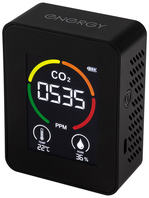 Специальный прибор для постоянного мониторинга качества воздуха в помещении - отслеживание концентрации углекислого газа, температуры и влажности. Цветная шкала уровня углекислого газа и звуковой сигнал при критическом повышении концентрации и необходимости проветривания помещения. Большой ж/к дисплей. Встроенный аккумулятор (1200 мАч), USB-кабель для зарядки. Настенная или настольная установка.
