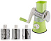 При помощи этого незаменимого прибора можно идеально ровно нарезать овощи для салата, делать тонкие пластины из картофеля или яблок для чипсов, натирать шоколад и орехи, готовить панировку. Вакуумная присоска в основании надежно фиксирует терку на рабочей поверхности. Три сменные барабанные насадки-тёрки из нержавеющей стали. Толкатель. Ручка для вращения насадок.
