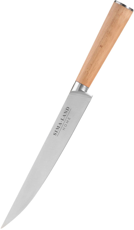 Нержавеющая сталь 3CR13 HCR 52-56. Длина лезвия - 20,5 см. Толщина - 2,5 мм. Острая заточка. Круглая деревянная рука с металлическим затыльником.