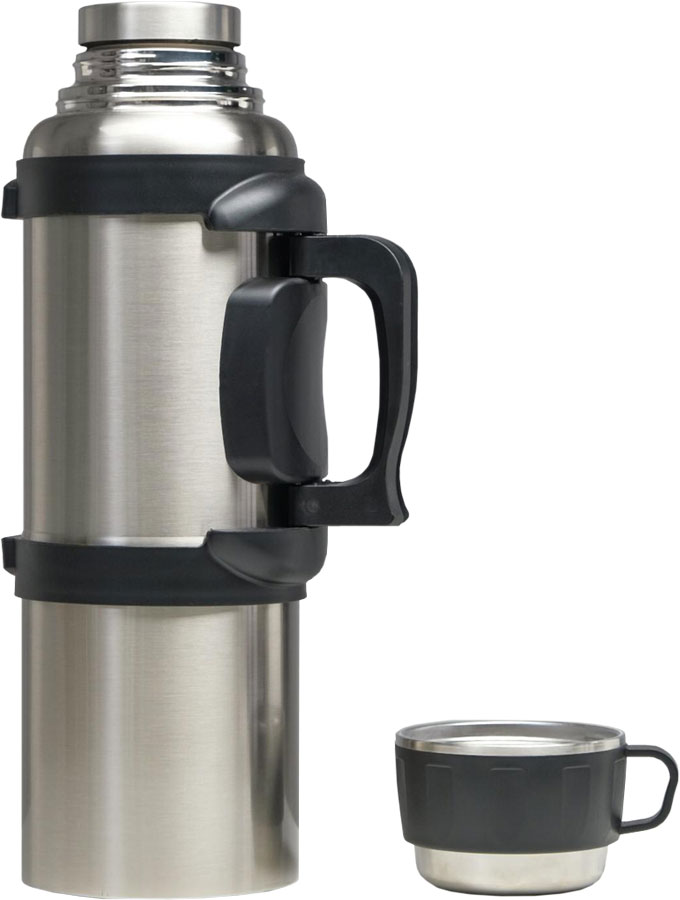 Поддерживает температуру горячих и холодных напитков в течение 60 часов. Корпус из высококачественной нержавеющей стали. Вакуумный. Оснащён ситечком, в котором можно заваривать чай. Герметичная пробка. Ремешок и выдвижная ручка для удобства переноски. Крышка-кружка.