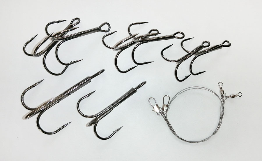 Тройники изготовлены из специальной углеродистой легированной стали с использованием современных технологий термообработки, что обеспечивает их высокую прочность. Заточка жала гарантирована специальной технологией. В наборе два стальных поводка и 8 тройников. Высота тройников от 45мм до 73мм. Набор собран в удобной коробочке размером 15*11*6,5см.