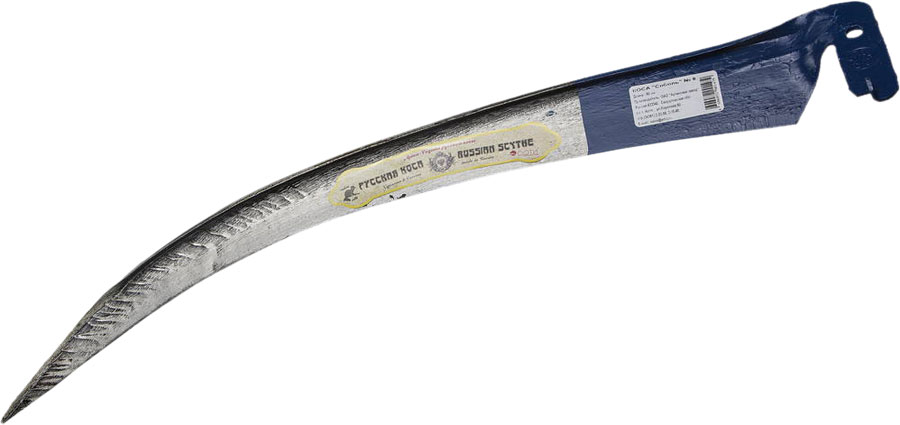 Изготовлена из качественной высокоуглеродистой стали. Применяется для скашивания трав и злаковых культур. Отбитая и заточенная. Длина лезвия - 60 см.