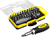В комплекте: компактная реверсивная отвёртка, 37 бит (25 мм) из хромованадиевой стали. Удобный пластиковый бокс.
