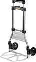 Лёгкая и надёжная! Грузоподъемность - 90 кг. Складная - удобна в хранении и перевозке. Сложение/разложение за счёт одного движения ногой. Телескопическая рукоятка легко регулируется по высоте. Максимальная высота ручки - 101 см. Каркас из стали. Платформа из алюминия - 39х28 см. Диаметр колёс - 13 см. Вес ~ 4 кг.