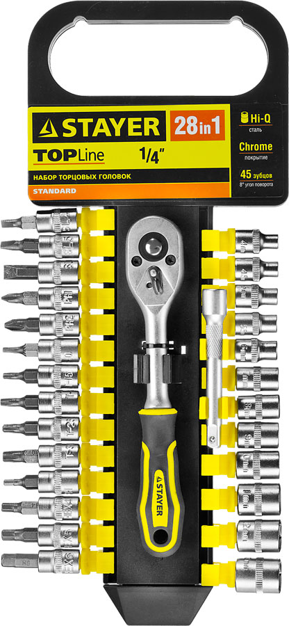 STAYER "TOPLine" набор торцовых головок 1/4" (28 предметов)