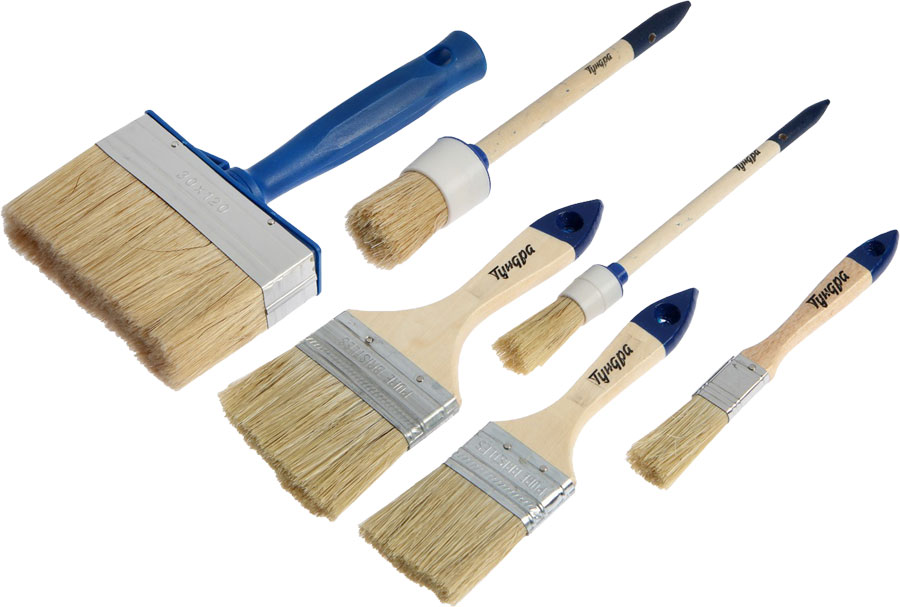 Универсальный набор кистей с натуральной щетиной и деревянными рукоятками. В наборе: макловица (30х120 мм), круглые кисти (№2, 8), плоские кисти (20, 50, 75 мм).