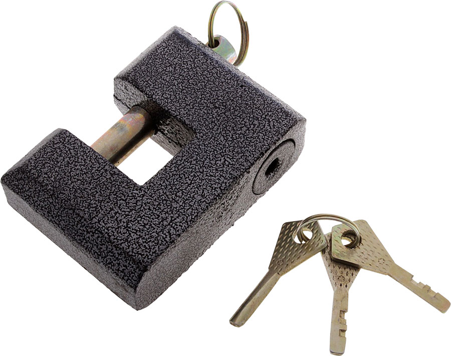 Размеры: 75х56 мм. Диаметр дужки - 9,6 мм. Три ключа. Вес ~ 550 гр.