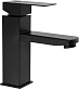 Корпус из нержавеющей стали со специальным чёрным покрытием, которое придает смесителю современный и стильный вид. Тип управления - рычажный. Керамический запорный клапан. Тип излива - литой, короткий (150 мм). Оснащён аэратором. Крепление на раковину или столешницу. В комплекте 2 подводки для воды (40 см). Вес ~ 0,8 кг.