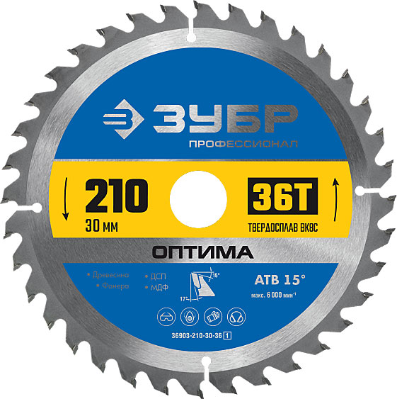 "Оптима" - универсальный пильный диск, для быстрого распила всех типов древесины. Применяется для распила твердых и мягких пород дерева, клеевых плит, ДСП, МДФ, фанеры. Твердосплавные резцы из карбид-вольфрамового сплава (ВК8). Специальные компенсационные прорези для защиты от перегрева и предотвращения деформации диска. Количество твердосплавных зубьев - 36/40/30 шт. (210/190/165 мм). Посадочное отверстие - 30 мм (20 мм - для диска 165 мм).